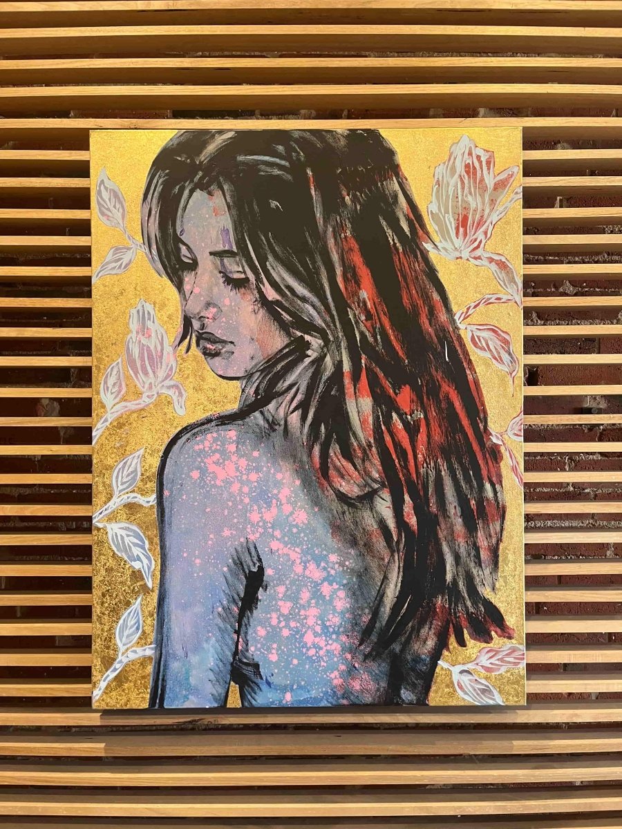 And complimented by meticulous floral details with a shimmering gold background