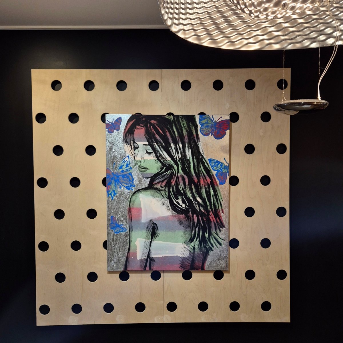 Layered with striking colours and blue butterflies