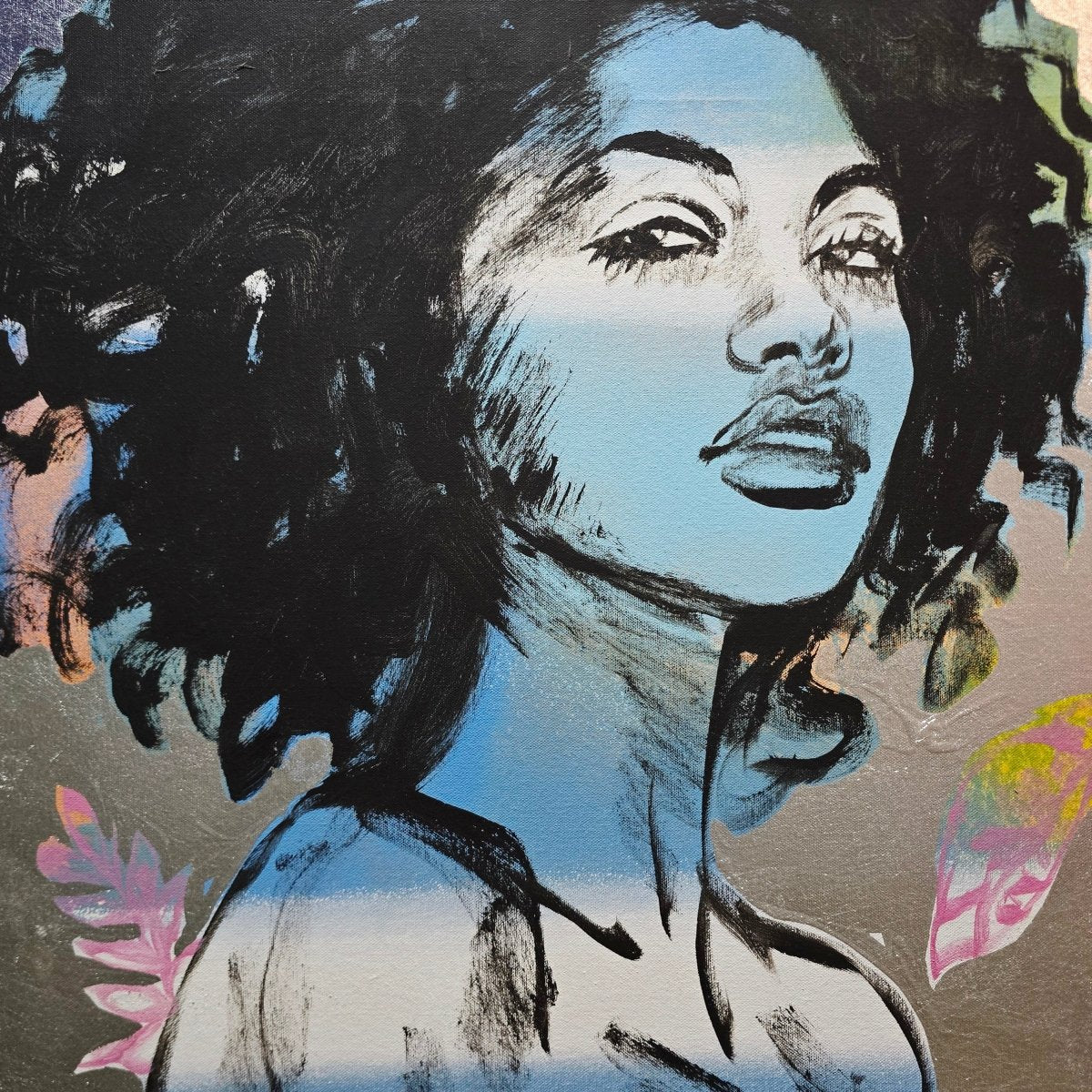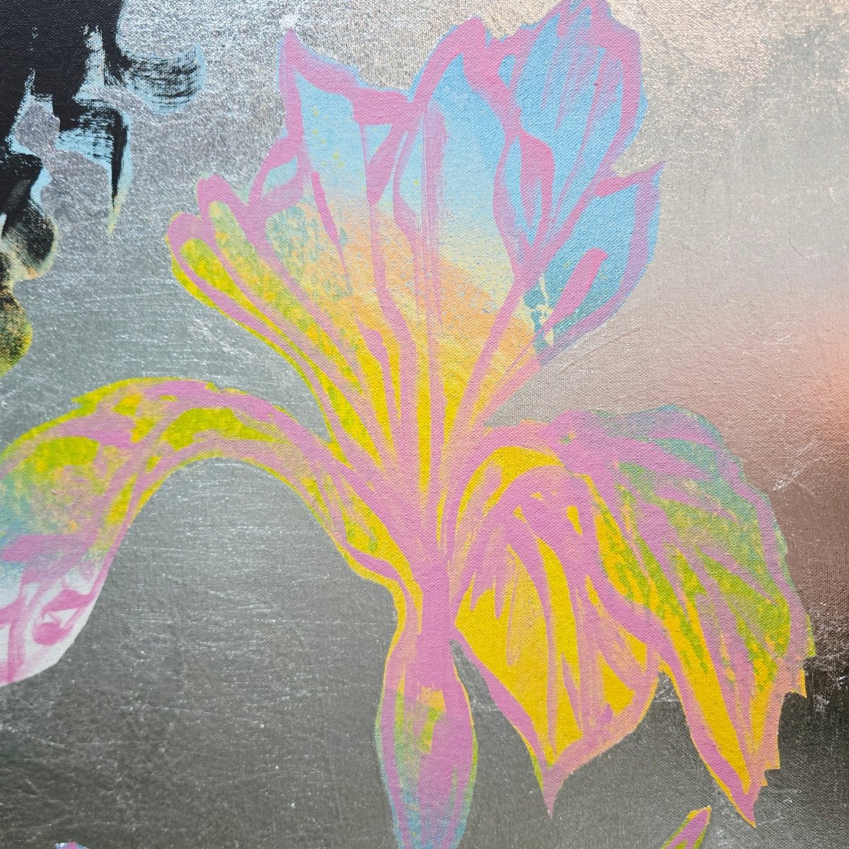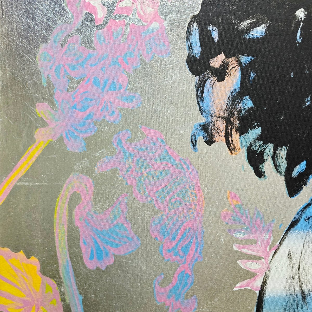 Acrylic on canvas with silver metal leafing