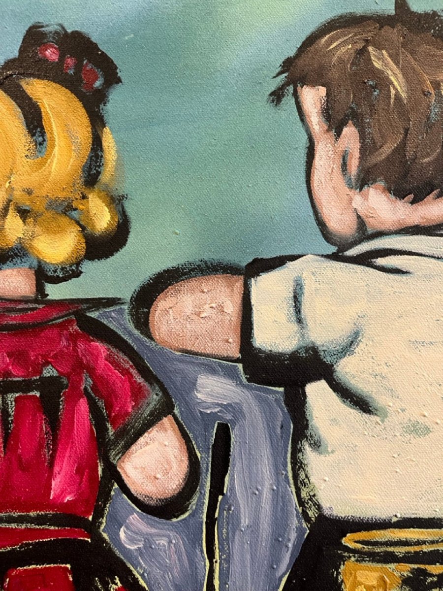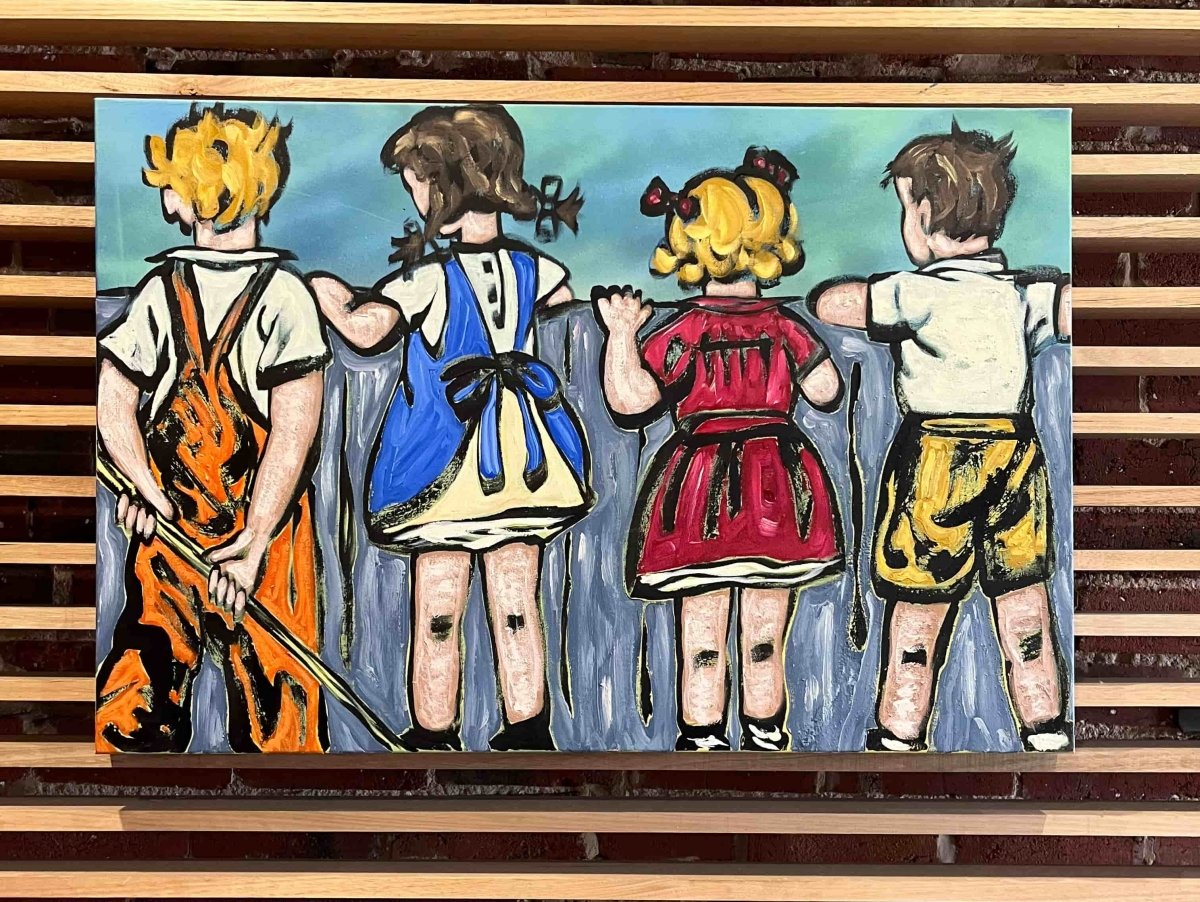 Painted with a bright colour palette showcasing the pure joy of childhood nostalgia