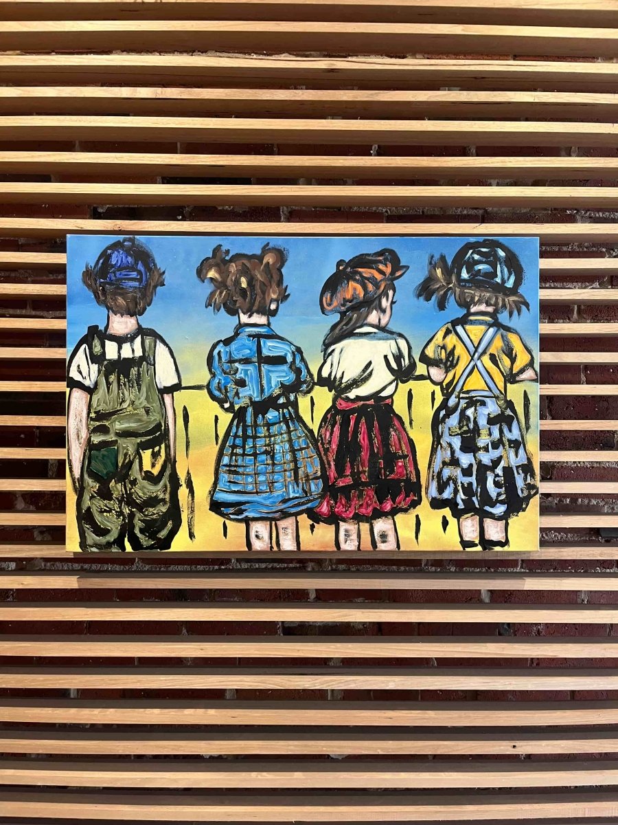 Painted with a bright colour palette showcasing the pure joy of childhood nostalgia