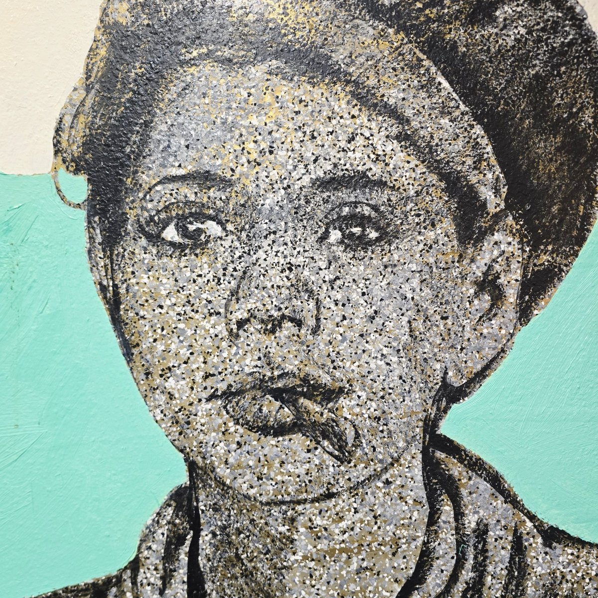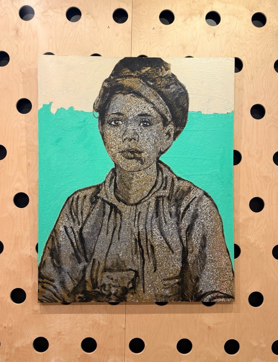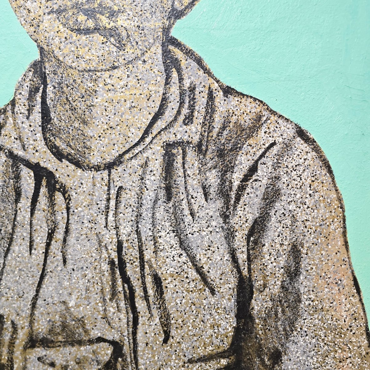 A rebellious 'Smoking Boy' painting from David Bromley's Children's series.
