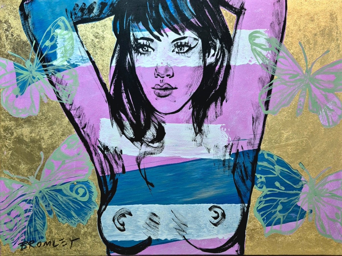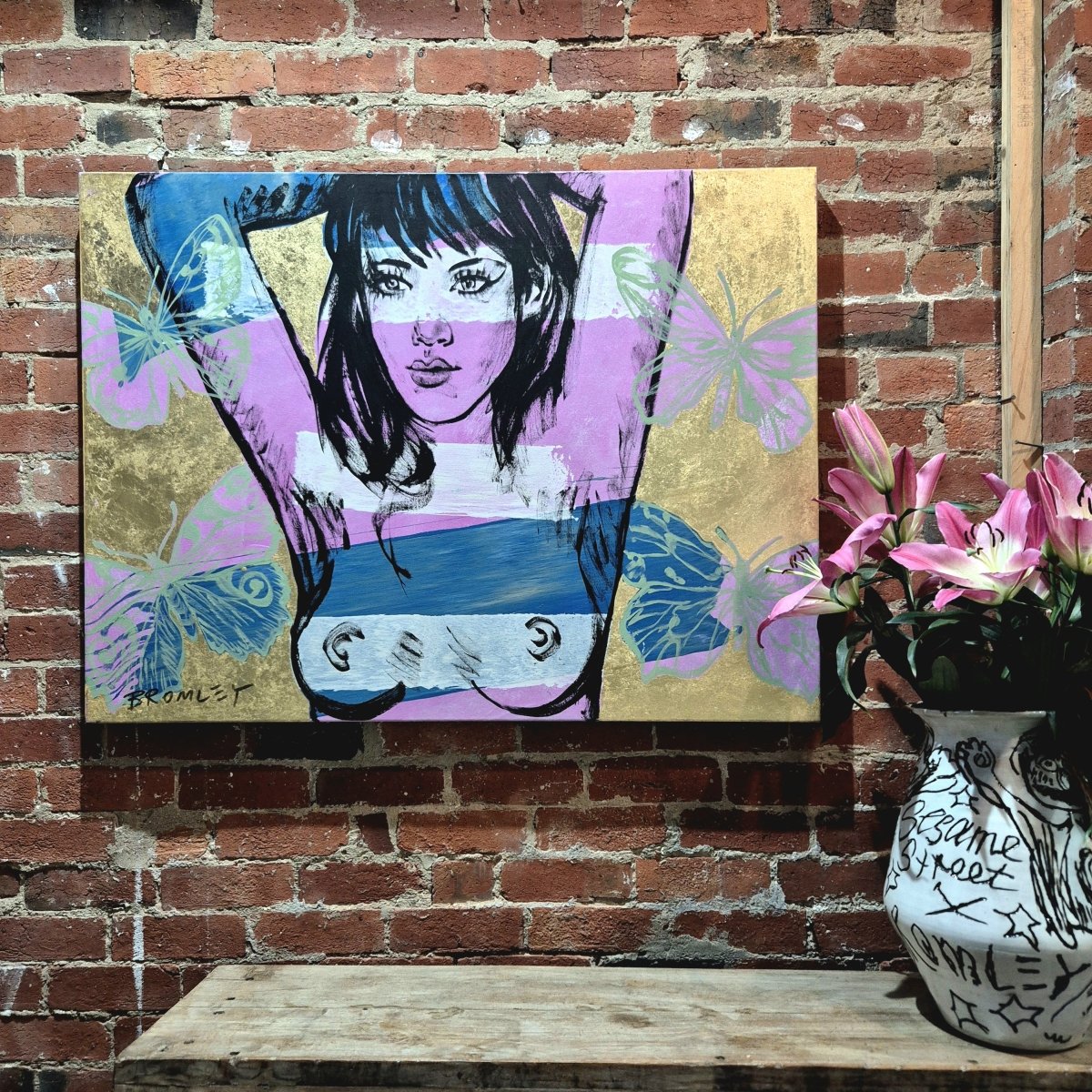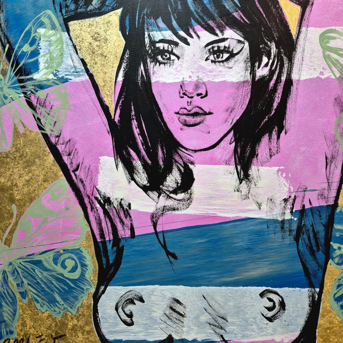 ‘Sophie’ has a striking, confident gaze and features David's signature bold graphic lines with beautiful gold leaf gilding.